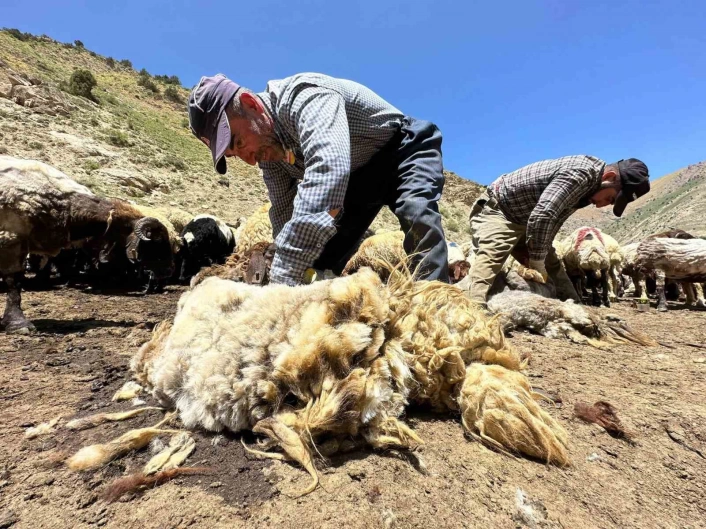 Sürü sahipleri, koyunların sıcak havalardan etkilenmemesi ve temizlenmesi amacıyla kırkım işlemini gerçekleştiriyor.