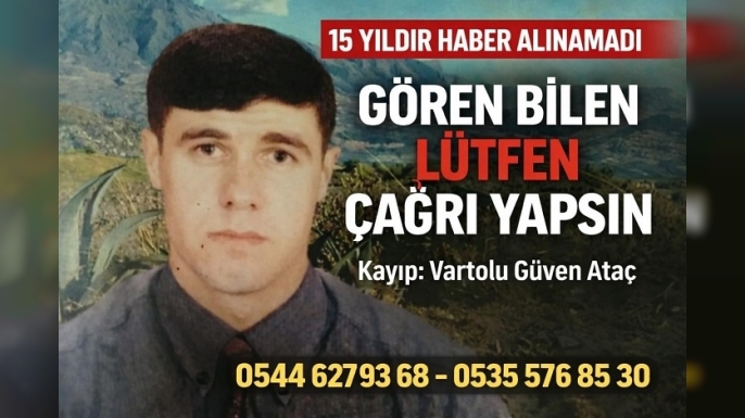 Ataç ailesi, yıllardır süren belirsizliğin sona ermesi için Güven Ataç’ı gören, tanıyan ya da hakkında bilgi sahibi olan vatandaşların emniyet birimleri, Varto İlçe Jandarma Komutanlığı ya da aile ile iletişime geçmesini istedi.
