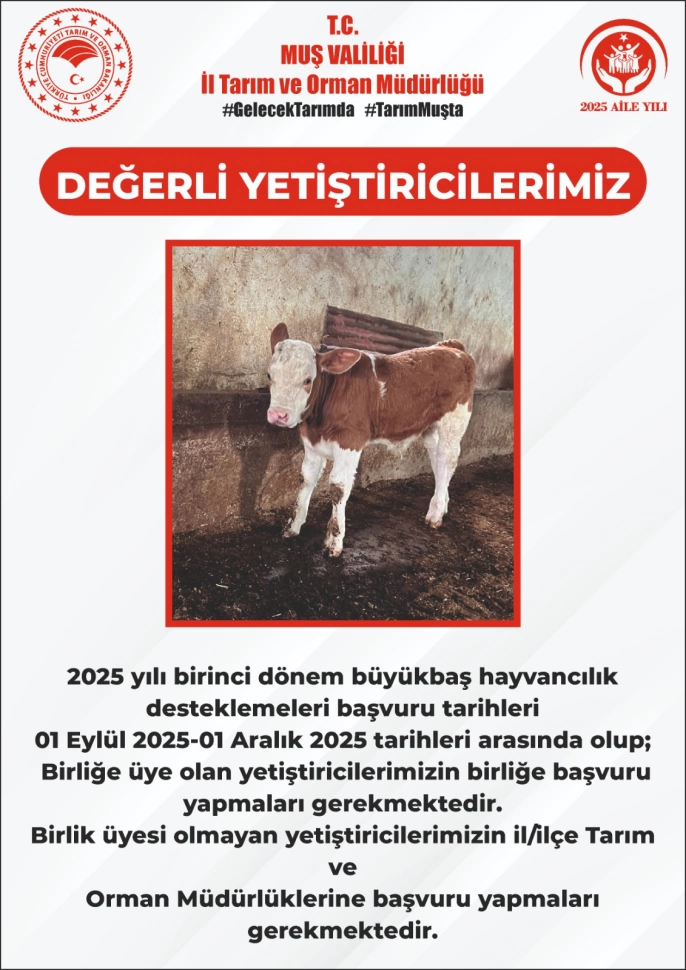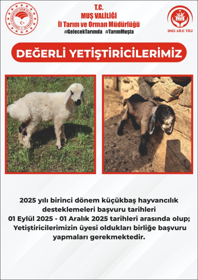 Serhed Haber’e aldığı bilgiye göre, 2025 yılı büyükbaş (buzağı/malak) ve küçükbaş (kuzu/oğlak) hayvancılık destekleme başvuruları 01 Eylül’de başlayacak.