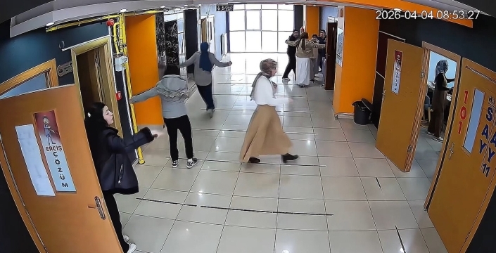 Van’da 4 Nisan sabahı meydana gelen 5.2 büyüklüğündeki depreme kursta yakalanan öğrenciler büyük korku yaşarken, görevli öğretmenlerin canlarını hiçe sayarak öğrencilerini kurtarmak için mücadele etmeleri ise güvenlik kamerasına yansıdı.