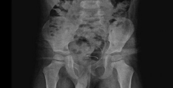 Yapılan röntgen incelemelerinde, mesane duvarında metal bir cisim olduğu tespit edildi. Uzun süre vücutta kalan 3 santimetrelik toplu iğnenin mesane duvarına yapıştığı belirlendi.