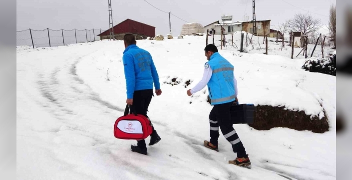 Bitlis Sağlık Müdürlüğü koordinasyonunda Bitlis Ağız ve Diş Sağlık Merkezi Evde Sağlık Hizmetleri ekibi çalışmalarına devam ediyor. Yoğun kar nedeniyle araç yolda kalınca, doktor ve teknisyen yardımcısı aracı itmek zorunda kaldı. Tüm zorluklara rağmen ekip, Saniye Teyze’ye ulaşmayı başardı ve diş çekimi başarılı bir şekilde tamamlandı.