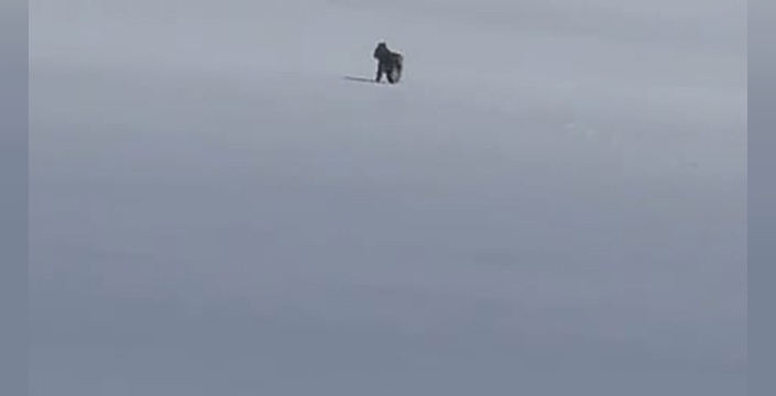 SERHED HABER- Edinilen bilgilere göre, sabah saatlerinde ilçe merkezine yakın kırsal bir bölgede Özel İdare ekipleri yol açma çalışması esnasında kar üzerinde ilerleyen vaşağı fark eden operatör o anları kayıt altına aldı.