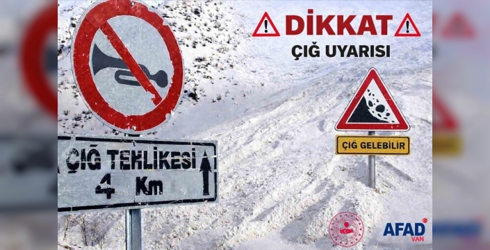 AFAD İl Müdürlüğünden yapılan açıklamada, meteorolojik değerlendirmelere göre bölgede etkili olan sulu kar yağışı, yağmur ve hava sıcaklıklarında yaşanan artış nedeniyle özellikle Van ve ilçelerinin yüksek kesimlerinde mevcut kar örtüsünün ağırlaşması ve zayıflaması sonucu çığ riskinin arttığı belirtildi. Açıklamada, "Isınan hava ile birlikte kar tabakasının dengesini kaybetmesi; eğimli, dik yamaçlar ve vadi içlerinde ani çığ oluşumlarına neden olabileceğinden vatandaşlarımızın dikkatli ve tedbirli olması büyük önem arz etmektedir. Bu kapsamda; dik ve eğimli yamaçlar, vadi içleri ve kar birikiminin yoğun olduğu bölgelerden uzak durulması, sulu kar yağışı ve yağmur sonrası kar kütlesinin ağırlaşabileceği alanlarda gereksiz bulunulmaması, kırsal alanlarda yaşayan vatandaşlarımızın ve hayvancılıkla uğraşanların barınaklarını çığ riskine karşı güvenli bölgelerde konumlandırmaları, avlanma, doğa yürüyüşü, dağcılık gibi faaliyetlerin zorunlu olmadıkça ertelenmesi, kara yollarında seyir halinde olan sürücülerin özellikle yüksek geçitler, dar vadiler ve yamaç altlarında dikkatli olmaları, ekiplerin uyarı ve yönlendirmelerine uymaları, resmî kurum ve kuruluşlar tarafından yapılan uyarıların yakından takip edilmesi hayati önem taşımaktadır. Muhtemel bir acil durumda 112 Acil Çağrı Merkezi ile iletişime geçilmesi gerekmektedir" denildi.