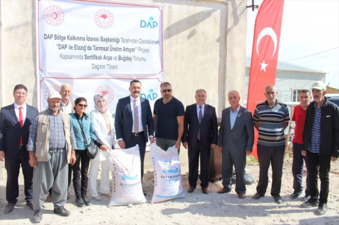 SERHEDHABER - Ağın Tarım ve Orman İlçe Müdürlüğü bahçesinde düzenlenen programda, Kaymakamlık ve DAP Bölge Kalkınma İdaresi Başkanlığı tarafından desteklenen "DAP ile Elazığ'da Tarımsal Üretim Artıyor Projesi" kapsamında üreticilere arpa, buğday, macar fiği ve yem bezelyesi tohumu verildi.