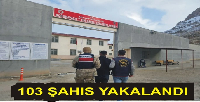 Ağrı'da çeşitli suçlardan 1-20 yıl arası kesinleşmiş hapis cezası bulunan ve aranan 103 şahıs, İl Jandarma Komutanlığı ve İl Emniyet Müdürlüğü ekiplerince yapılan operasyonlarla yakalanarak cezaevine teslim edildi.