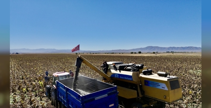 Merkeze bağlı Tezeren köyünde yapılan ayçiçeği hasadına katılan İl Tarım ve Orman Müdürü Mehmet Hüseyinoğlu, hem kalite hem de miktar açısından üreticilerin memnun olduğunu belirterek, "Ağrı’nın Tezeren köyünde Mirza Tanrıverdi isimli vatandaşımızın 9 bin dekar alanda yaptığı ayçiçeği hasadındayız. Buradaki ürün çerezlik ayçiçeği. İlimizde 2024 yılında toplam 34 bin 500 dekar alanda ayçiçeği üretimi yapılmıştı. Bunun 500 dekarı yağlık, 34 bin dekarı ise çerezlik ayçiçeğiydi. 2025 yılında ise toplam 50 bin 500 dekar alanda ekim gerçekleştirildi. Bunun 15 bin dekarı yağlık, 37 bin dekarı ise çerezlik ayçiçeği oldu. Geçtiğimiz yıl ayçiçeği üretiminden ilimize 315 milyon TL katkı sağlandı. Bu yıl ise 750 milyon TL’ye yakın bir girdi elde edilmesini bekliyoruz. Çerezlik ayçiçeğinin daha çok tercih edilmesinin sebebi, piyasa şartlarında üreticiye daha yüksek gelir sağlamasıdır. Ayrıca genellikle sözleşmeli üretim yapıldığı için pazar sorunu yaşanmıyor. Üretici ürünü daha ekmeden hangi firmaya satacağını biliyor" dedi.