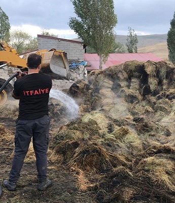 Uzun uğraşlar sonucu kontrol altına alınan yangında yaklaşık 3 bin balya ot yandı.