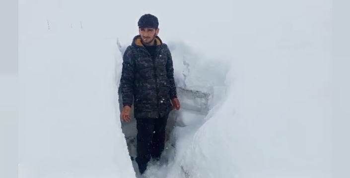 Kar yağışı nedeniyle köy yolunun ulaşıma kapandığını söyleyen vatandaşlardan Beytullah Demirtaş, "Baharı beklerken yeniden karla karşılaştık. Köyün tamamı karla kaplandığı için köy görünmüyor. Benim boyum kadar kar yağdı. Karın boyu benimle aynı. 5 aydır bu haldeyiz. Burası Kuzey Kutbu falan değil. Ağrı’nın Diyadin ilçesine bağlı bir köy" ifadelerine yer verdi.