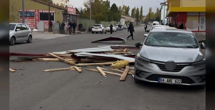 SERHED HABER - İlçe merkezinde aniden başlayan fırtına vatandaşlara zor anlar yaşattı. Birçok binanın çatısı uçurarken, çatı parçalarının yollara düşmesiyle kısa süreli panik yaşandı, çevredeki insanlar güvenli alanlara sığındı.