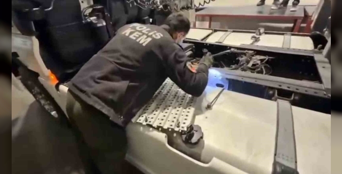 Ekiplerce takibe alınan çekici ve dorsesinde yapılan aramada, 2 paket halinde toplam 1 kilo 220 gram skunk maddesi bulundu.