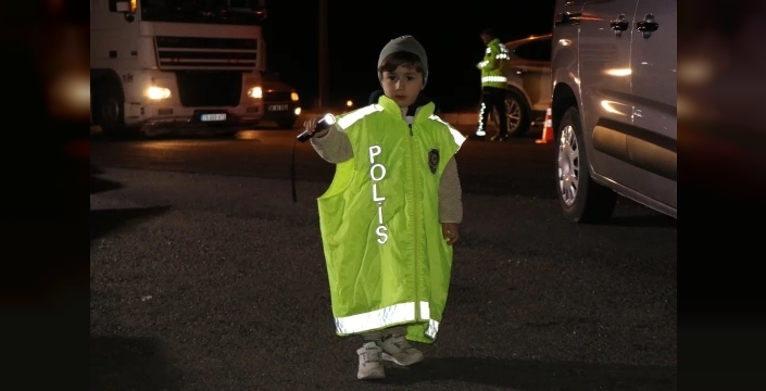 Ağrı uygulama noktasında görev yapan polislerin yanında duran küçük bir çocuk, üzerine giydiği "Polis" yazılı reflektörlü yelekle adeta ekibin en küçük üyesi oldu. Elindeki fenerle araçlara yön veren minik çocuk, görev başındaki polisleri taklit ederek sürücülere tebessüm ettirdi. Gece saatlerinde yapılan uygulamada vatandaşlar, bu sıcak ve samimi görüntü karşısında duygusal anlar yaşadı. Polis ekipleri ise çocuğun ilgisinden memnuniyet duyduklarını belirterek, çocuklara güvenlik bilincinin küçük yaşlarda aşılanmasının önemine dikkat çekti.