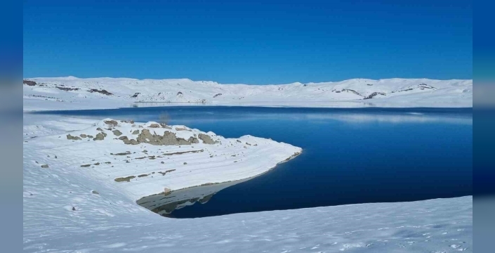 Karla kaplı tepeler ve berrak suyun buluştuğu manzara, izleyenlere görsel şölen sundu.