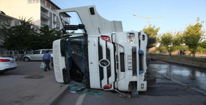 SERHED HABER - Devlet Bahçeli Bulvarı'nda C.B., idaresindeki 76 DK 211 plakalı tır, tekerinin patlamasını sonucu devrildi.