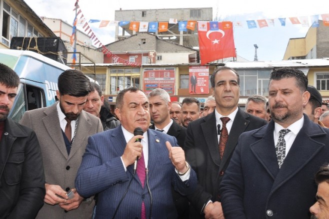 Bulanık ilçe girişinde Ak Parti Belediye Başkanı ve adayı Yakup Kaya, AK Parti İlçe Başkanı Mehmet Ali Saatçi, MHP İlçe Başkanı Zafer Yıkılmaz ve partililer tarafından karşılanan Milletvekili Mehmet Emin Şimşek, ilçe merkezinde bulunan seçim borusunun önünde toplanan kalabalığı selamlayarak, vatandaşlara seslendi.