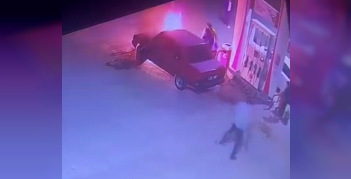 Olay anı, petrol istasyonunun güvenlik kameralarına da yansıdı.