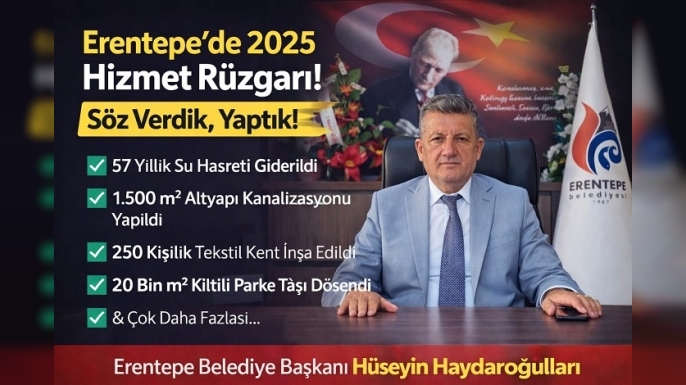 2025 değerlendirmesinde konuşan Başkan Hüseyin Haydaroğulları şu ifadeleri kullandı“Biz bu göreve makam için değil, Erentepe’ye hizmet için geldik. 2025 yılı boyunca altyapıdan sosyal projelere, istihdamdan çevre düzenlemesine kadar beldemizin her köşesine dokunan işler yaptık. Bundan sonra da daha güçlü bir Erentepe için gece gündüz çalışmaya devam edeceğiz.” Dedi.