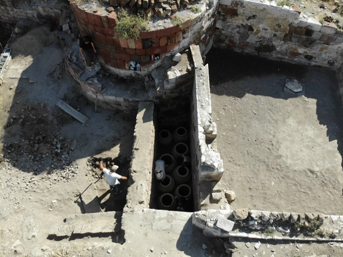 Ani'de yürütülen çalışmalarla ile ilgili açıklamalarda bulunan Ani Ören Yeri Kazı Başkanı Doç. Dr. Muhammed Arslan, “Ani Ören Yeri'ndeki çalışmalarımız 8 farklı noktada devam etmekte ve içerisinde sanat tarihçileri, arkeologlar, restoretörler ve restoretör mimarlarında dahil olduğu yaklaşık 35 kişilik bir ekiple disiplinler arası bir çalışmayla Ani'deki kazı koruma çalışmalarımıza devam ediyoruz. Bu yıl ki çalışma alanlarımızdan biri de şuan üzerinde bulunduğumuz Batı Aşot Surları olarak adlandırdığımız bu alan, burası Ani'nin aslında ilk dış surları, yani Bagratlılar zamanında inşa edilmiş, ancak 1064 yılında Sultan Alparslan'ın Ani'yi fethiyle birlikte Selçuklular eliyle de burası konutlara dönüştürülmüş. Buradaki kazı çalışmalarımız devam ederken, bir erzak deposunu ortaya çıkarmış olduk. Depomuz 5x2 boyutlarında dikdörtgen mekanlı 1 oda yaklaşık 10 metre karelik bir odadan bahsediyoruz. Ve bu odanın içerisinde 8 tane erzak küpünü gün yüzüne çıkardık. Küplerimiz yaklaşık 1,5 metre boyunda ve yine yaklaşık 5 santimetrelik ağız çaplarına sahipler. Ve 2 katlı bir odadan bahsediyoruz aslında odanın alt katı tamamen erzak küplerine ayrılmış ve biz burasının kuru gide deposu olarak Ani'de yaşayan Orta Çağlı insanların kuru gıdalarını bakliyatlarını, tahıllarını depoladıkları bir mekan olarak inşa edildiğini düşünüyoruz” dedi.