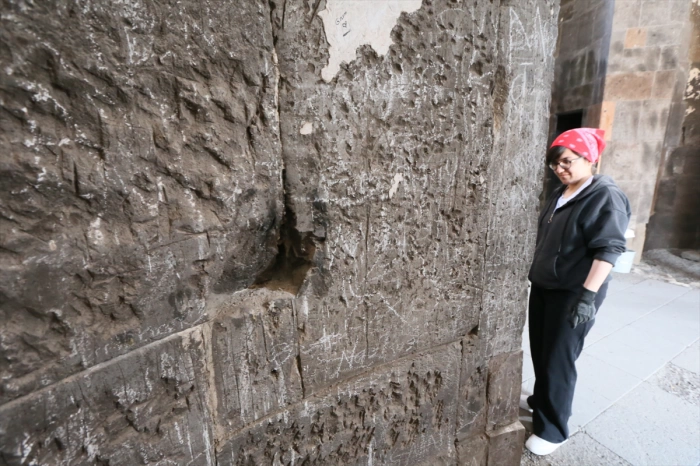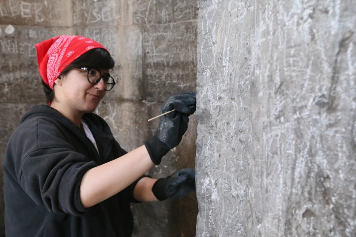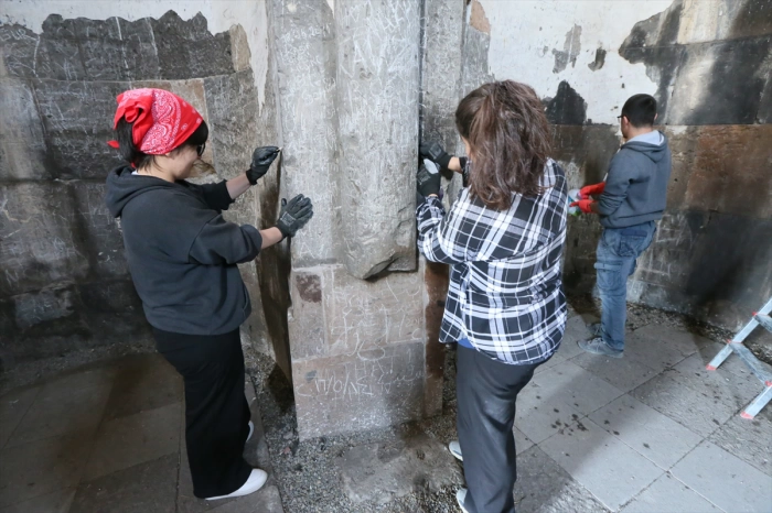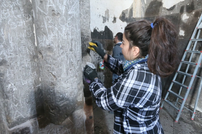 Kilisenin içerisinde yer alan yazıları titizlikle silen restoratörler, vatandaşlardan eserlere daha duyarlı ve hassas davranmasını istedi.
