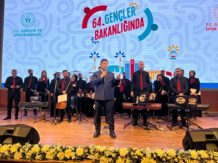SERHED HABER -"Gençler Bakanlığında" projesi kapsamında Ankara’ya giden yaklaşık yüz genç, Gençlik ve Spor Bakanlığını gezme fırsatı yakaladı. Geçtiğimiz aylarda düzenledikleri konserle adlarından söz ettiren Muş Gençlik ve Spor İl Müdürlüğü bünyesindeki Türk müzik korosu da Gençlik ve Spor Bakanı Osman Aşkın Bak’ın da katıldığı muhteşem bir konsere imza attı. Muş, Muğla, Kahramanmaraş ve Çanakkale’den gençlerin de katıldığı konserde istek şarkılar çalındı. Türk müziğinin birbirinden güzel eserlerinin seslendirildiği konser büyük beğeni topladı.