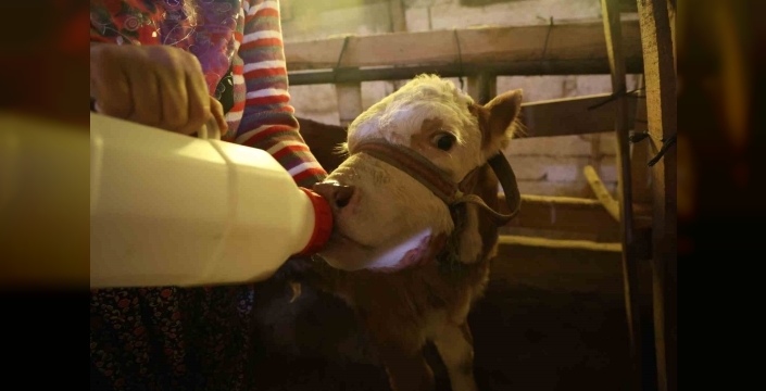 Biberonla besliyoruz. Hayvan elimizde ölmesin diye diğer hayvanlardan sağdığımız ve dışarıdan aldığımız sütle besliyoruz. Sabah kalktığımızda 3 çocuğum var, buzağıyı da bizim çocuklarımızın yerine koymuşuz. Sabah hemen koşup karnını doyuruyoruz. Sütünü verip tımarını yapıyoruz. Hayvancılığı seviyoruz ama zorlukları da çok fazla. Onu görmesek olmuyor. Buzağı bizim maskotumuz oldu" dedi.
