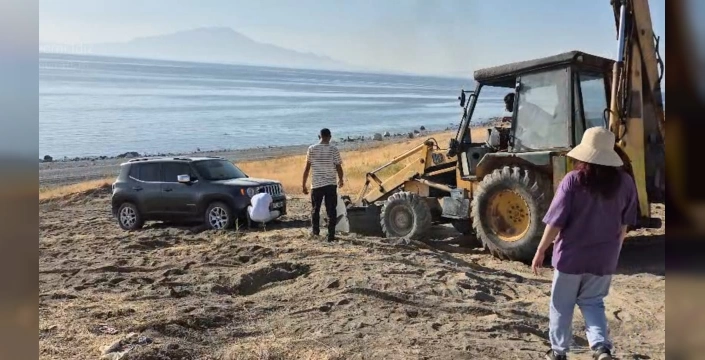 Aileleriyle birlikte sahile giden vatandaşlar, bir yandan piknik yaparken bir yandan da Van Gölü'nün serin sularında yüzme fırsatı buluyor.