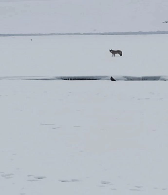 Ardahan Ovasında çekilen görüntülerde kurt leş yerken cep telefonu kamerası ile görüntülendi. Kurt daha sonra karla kaplı ovanın içlerine doğru ilerleyerek gözlerden kayboldu.