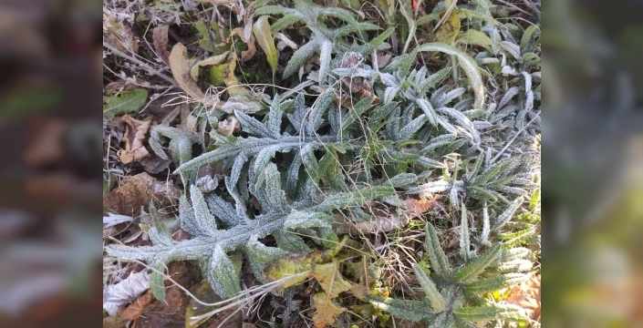 Sabah saatlerinde soğukların etkisiyle bitkiler kırağı tuttu.