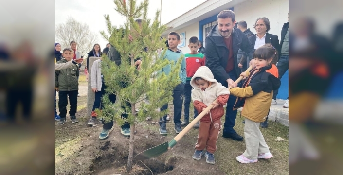 SERHED HABER - Yalınçayır Mahallesi İlkokulu bahçesinde gerçekleştirilen etkinlikte, belirlenen alanlara fidanlar dikilerek toprakla buluşturuldu ve can suyu verildi.