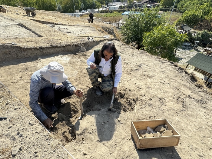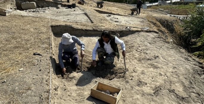 "Geç Tunç Çağı'na ait silo tabanı olduğunu düşündüğümüz, taştan örülmüş bir tabanla karşılaştık. Yine bunun biraz güneyinde çanak çömlekleri görüyoruz. Daha onları kazmayı bitiremedik. Sanırım bu sezon bitmeden onlar ortaya çıkacak. Daha da diplere ineceğiz. Yine çok yeni bir bulgumuz var. Burada bir ocak tabanı olduğunu düşünüyoruz. Belki bir fırın tabanı, daha o dün açıldı. Halil Tekin hoca ve Bakanlığın aldığı 4 yıllık bir çalışma programı var. Bunun için 4 sene planlandı. Şu an için biz yıl sonuna kadar devam ediyoruz."