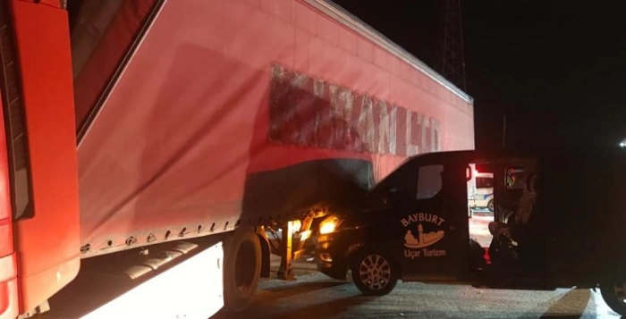 SERHED HABER - Alınan bilgiye göre, Aşkale Çimento fabrikası mevkiinde saat 18.00 sıralarında, Gürcistan uyruklu sürücünün kullandığı RT 116 T yabancı plakalı tır, kontrolden çıkarak refüje devrildi. Havanın kararmasının yanı sıra yolda hiçbir önlem almayan sürücü kazaya sebebiyet verdi. Bu sırada Aşkale’den Bayburt güzergahına seyir halindeki yolcu midibüsü yolu trafiğe kapatan tırı son anda fark edince duramayarak çekiciye çarptı. Kazada 4 kişi yaralandı. Yaralılar ambulansla hastaneye kaldırıldı.