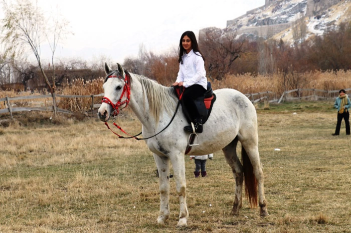 Ata binmenin en iyi zamanının çok kar yağdığı zamanlar olduğuna vurgu yapan Muştu, “Kış mevsimi nedeniyle doğal olarak biraz azalma var. Çünkü zemin kaygan. Ancak kış mevsiminde en güzel at binilen zamanlar, çok kar yağdığı zamanlardır. Yerde çok kar olduğunda at kaymaz ve daha güvenli olur. Kışın nispeten biraz soğuk olduğu için bu sektörde azalma yaşanıyor. Ama her yaş grubundan ziyaretçilerimiz var. 2 yaşındaki bebekten 70 yaşındaki insana kadar herkesin ortak ilgi alanı bu. Küçük çocuklar için midilli atlarımız var. Burada kişisel at sahibi olanlar da var ama çiftliğin biniş yaptığı 15 at mevcut. Burada öncelediğimiz önce can güvenliğidir” diye konuştu.