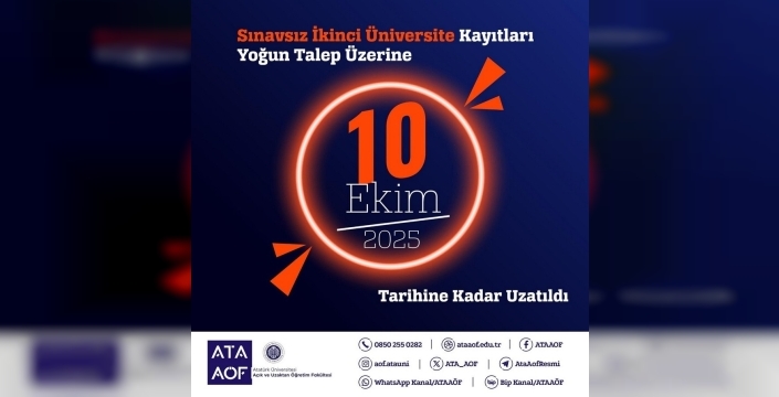Sınavsız ikinci üniversite kapsamında materyal ücreti ödeme ve kesin kayıt işlemleri 10 Ekim 2025 tarihine kadar devam edecek. Atatürk Üniversitesi, sunduğu bu fırsat ile öğrencilerine yeni ufuklar açmayı, farklı disiplinlerde bilgi ve beceri kazandırarak onların geleceğe daha donanımlı bir şekilde hazırlanmasına katkı sağlamayı hedefliyor.