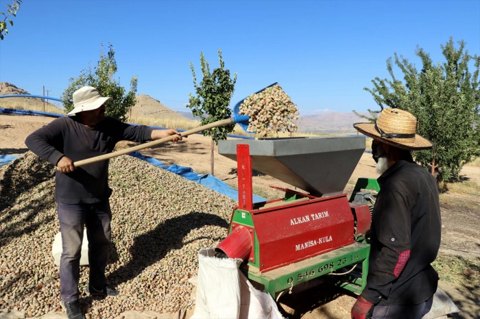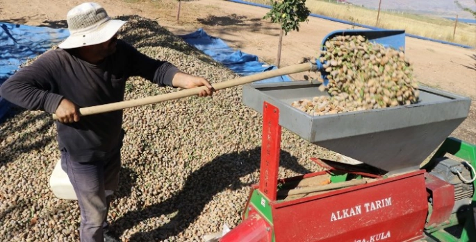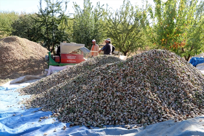 Üreticilerin bu yıl bademde beklediği rekolte yaklaşık 400 ton. Ağaçlardan silkeleme yöntemiyle yere serilen brandalara dökülen bademler, daha sonra dal, yaprak ve yeşil kabuklarından ayıklanması için patoza atılıyor.