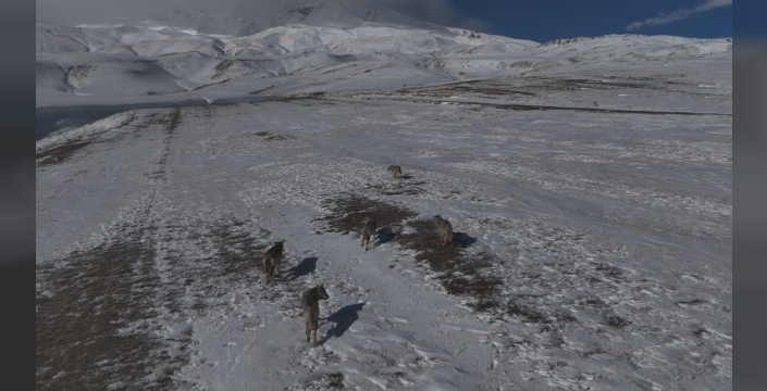 Beldeye yakın dağlık bölgede hobi amaçlı dron uçuran bir vatandaş, sürü halinde ilerleyen kurtları fark etti. Yaklaşık birkaç dakika süren görüntülerde kurtların düzenli bir şekilde arazide ilerlediği, çevreyi kontrol ederek hareket ettikleri görülüyor. Görüntüleri kaydeden Orhan Amen, "Doğanın içinde böyle bir ana tanıklık etmek heyecan vericiydi. Kurtlar beni fark edince yön değiştirip uzaklaştı" dedi.