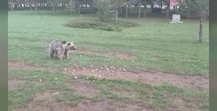 Refahiye ilçesinde çalışan sağlık personeli Serkan Kelle eşi ile birlikte Dumanlı Yaylası’nda yaşayan Çemşit ismini verdiği bozayıyı besledi, o anları ise eşine kayıt altına aldırttı.