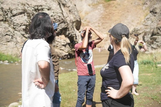 Muş’un doğal güzellikleri ve huzur dolu atmosferinin film için mükemmel bir arka plan oluşturduğunu söyleyen Yönetmen Elhan, "Biz film çekmeden önce ön hazırlık yapıyoruz. Buraya da ön hazırlık ekibiyle geldik. İşte görüntü yönetmeni, yardımcı yönetmen, yapım ekibi, sanat ekibi, kostüm ekibi hep birlikte geldik. 3-4 gün kalacağız. Onlara daha önce gezdiğimiz, yalnız geldiğimde gezip görüp beğendiğim mekânları gösteriyoruz.
