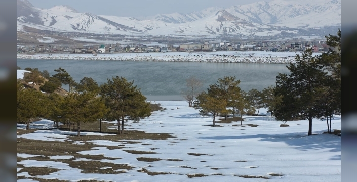 Van’da havaların ısınmasıyla birlikte kış boyunca yüzeyi donan Sıhke Göleti’nin buzları tamamen çözüldü. Günlerdir etkisini artıran sıcak hava, gölet üzerindeki kalın buz tabakasını eriterek yerini suya bıraktı.