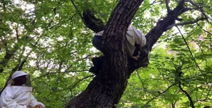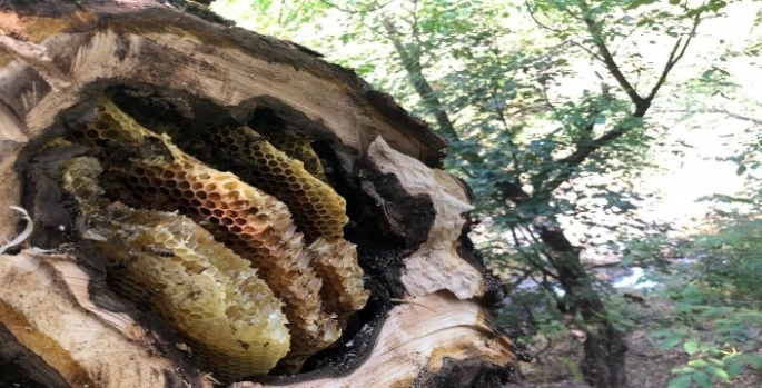 Arıların kendilerini sokmaması için buldukları yuvaların ağzını yapraklarla kapatan avcılar, daha sonra peteklere ve arılara zarar vermeden hassas bir şekilde ağacı tıraşlayıp balı bulundukları yerden çıkarıyor, arıları da kovanlara bırakıp götürüyor.