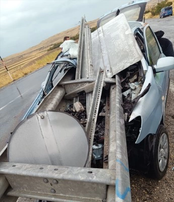 Metal bariyere saplanan otomobildeki sürücü, ekiplerin çabasıyla araçtan çıkarılarak ambulansla hastaneye kaldırıldı.