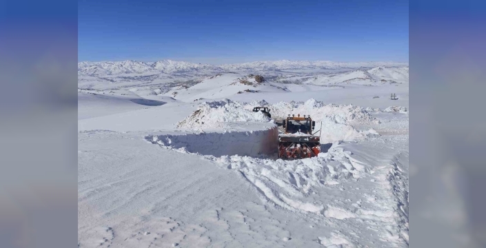 Van’ın Başkale ilçesinde yer yer 3 metreyi bulan kar tünellerinde ekiplerin yol açma çalışmaları devam ediyor.