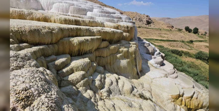 SERHED HABER - Başkale'de yer alan bu travertenler, Pamukkalenin beyaz güzelliklerini andıran dokusu ve etkileyici manzarasıyla dikkat çekiyor.