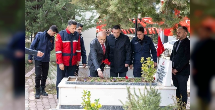 Malatya Şehitliği’nde düzenlenen törende Şehitlik Anıtı’na çelenk sunumunda bulunan Başkan Er, şehitlerin kabirlerine çiçek bırakarak dua etti.