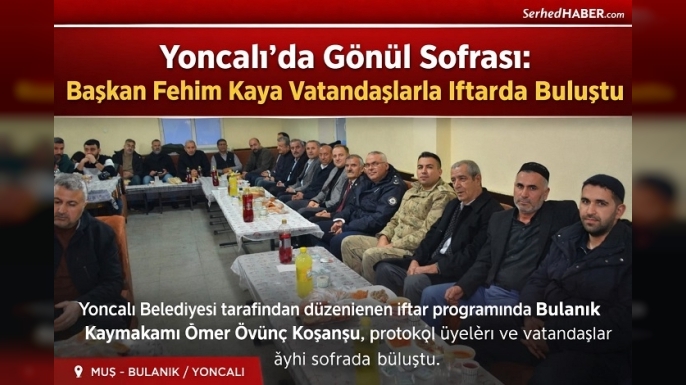 Kaymakam Koşansu konuşmasında şu sözlere yer verdi: “Ramazan ayı, birlik ve beraberliğimizi pekiştiren, gönüllerimizi bir araya getiren çok özel bir zaman dilimidir. Bu akşam Yoncalı’da vatandaşlarımızla aynı sofrayı paylaşmaktan büyük memnuniyet duyuyorum. Bu güzel organizasyonu gerçekleştiren Yoncalı Belediye Başkanımız Sayın Fehim Kaya’ya teşekkür ediyorum. Bu tür programlar toplumumuzun dayanışma ruhunu güçlendiriyor. Ramazan ayının başta Yoncalı olmak üzere Bulanık’ımıza, Muş’umuza ve tüm ülkemize sağlık, huzur ve bereket getirmesini diliyorum.” İfadelerine yer verdi.