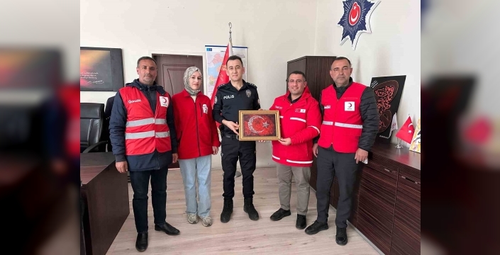 VAN (İHA) – Kızılay Muradiye Şube Başkanı Selçuk Yay, beraberindeki heyetle Muradiye İlçe Emniyet Müdür Vekili Başkomiser Ömer Üresin’i m