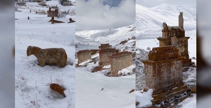 Erzincan Valiliği tarafından paylaşılan ve Mustafa Başgöze imzasını taşıyan görüntülerde de, asırlardır ayakta kalan mezar taşlarının bölgenin kültürel mirasını yansıttığı görüldü.