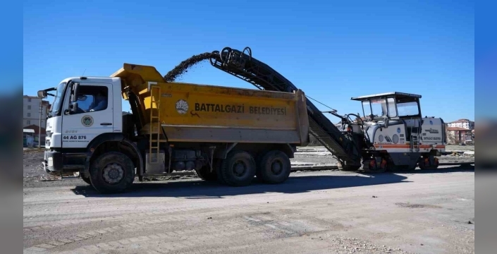 Battalgazi Belediyesi, kaldırılan Bağcılar Konteyner Kent alanındaki asfaltı freze çalışmasıyla sökerek kırsal mahalle yollarında kullanıyor.
