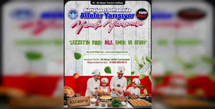 Battalgazi Belediyesi Kent Tarihi, Tanıtım ve Turizm Müdürlüğü tarafından 15-22 Nisan Turizm Haftası kapsamında "Battalgazi Sofrasında Aileler Yarışıyor" temasıyla yemek yarışması düzenlenecek. Kırkgöz Sahil Parkı’nda 18 Nisan’da gerçekleştirilecek etkinlikte aileler, Malatya’nın geleneksel lezzeti içli köfteyi hazırlayarak jüri karşısına çıkacak.