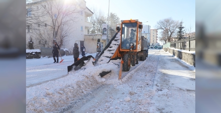 Yol ve kaldırımlarda vatandaşlar ile sürücülerin hiçbir sorun yaşamaması için aralıksız çalışan iş makinelerine eşlik eden belediye ekipleri, hummalı bir mesai harcıyor.