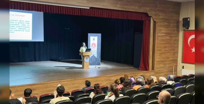 Eğitim kapsamında davranışsal bağımlılıkların birey ve toplum üzerindeki etkileri, erken fark etme yöntemleri ve sağlıklı baş etme yolları detaylı şekilde ele alındı. Eğitim İl Sağlık Müdürlüğü personellerinden Ceylan Çelebi tarafından verildi.